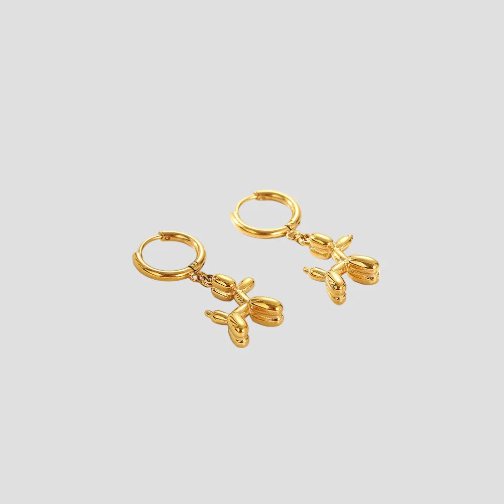 Šie kūrybingi auskarai, kurių forma primena šunį su balionais, suteikia jūsų įvaizdžiui žavesio, lengvumo ir šypsenos! Įkvėpti žaismingos pripučiamų figūrėlių estetikos, šie maži auskarai, kurių forma primena šunį, yra tikras akį traukiantis elementas.